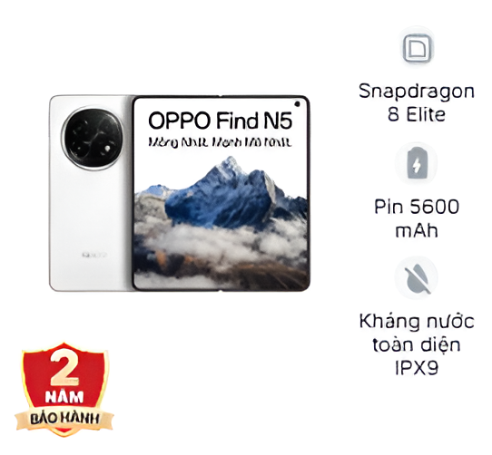 OPPO Find N5 là mẫu smartphone gập cao cấp đánh dấu bước tiến đột phá của OPPO trong phân khúc thiết bị gập hiện đại. Sản phẩm không chỉ gây ấn tượng với thiết kế mỏng nhẹ vượt trội mà còn mang đến sự kết hợp toàn diện giữa hiệu năng mạnh mẽ, thời lượng pin bền bỉ và công nghệ hiển thị tiên tiến, phù hợp với người dùng đang tìm kiếm một thiết bị khác biệt và đẳng cấp.